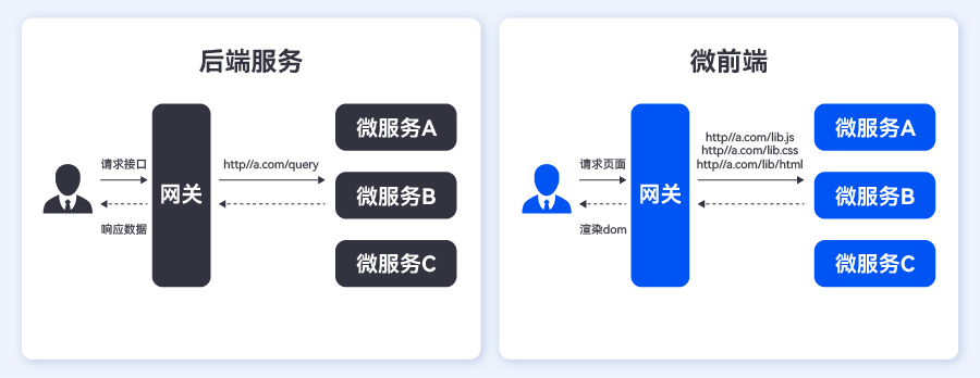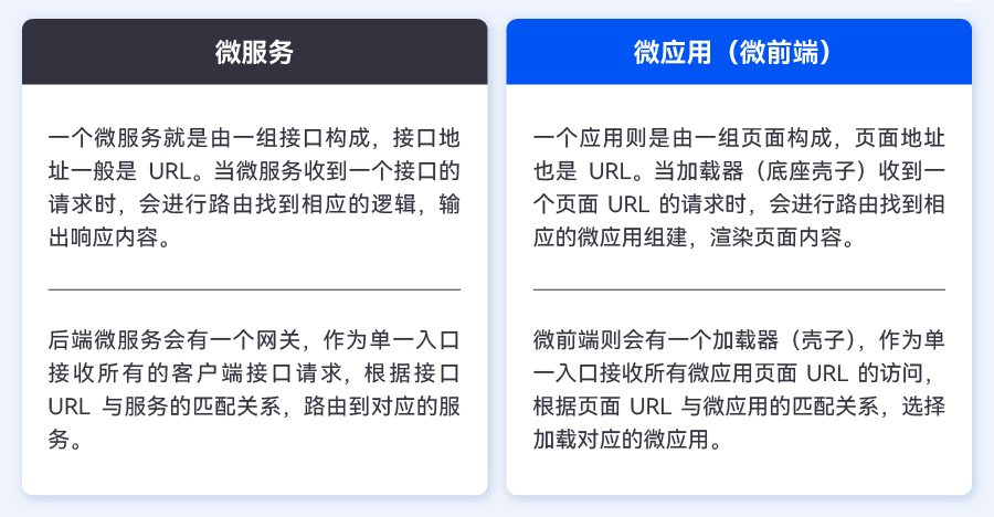 通過跟微服務(wù)進(jìn)行對(duì)比,我們可以更清晰地理解微前端的概念: