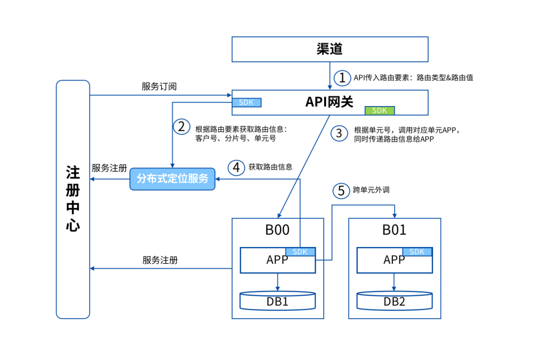 1.網關收到請求或單元內系統發起外調時,傳入路由類型和路由值,通過sdk發送到分布式定位服務;