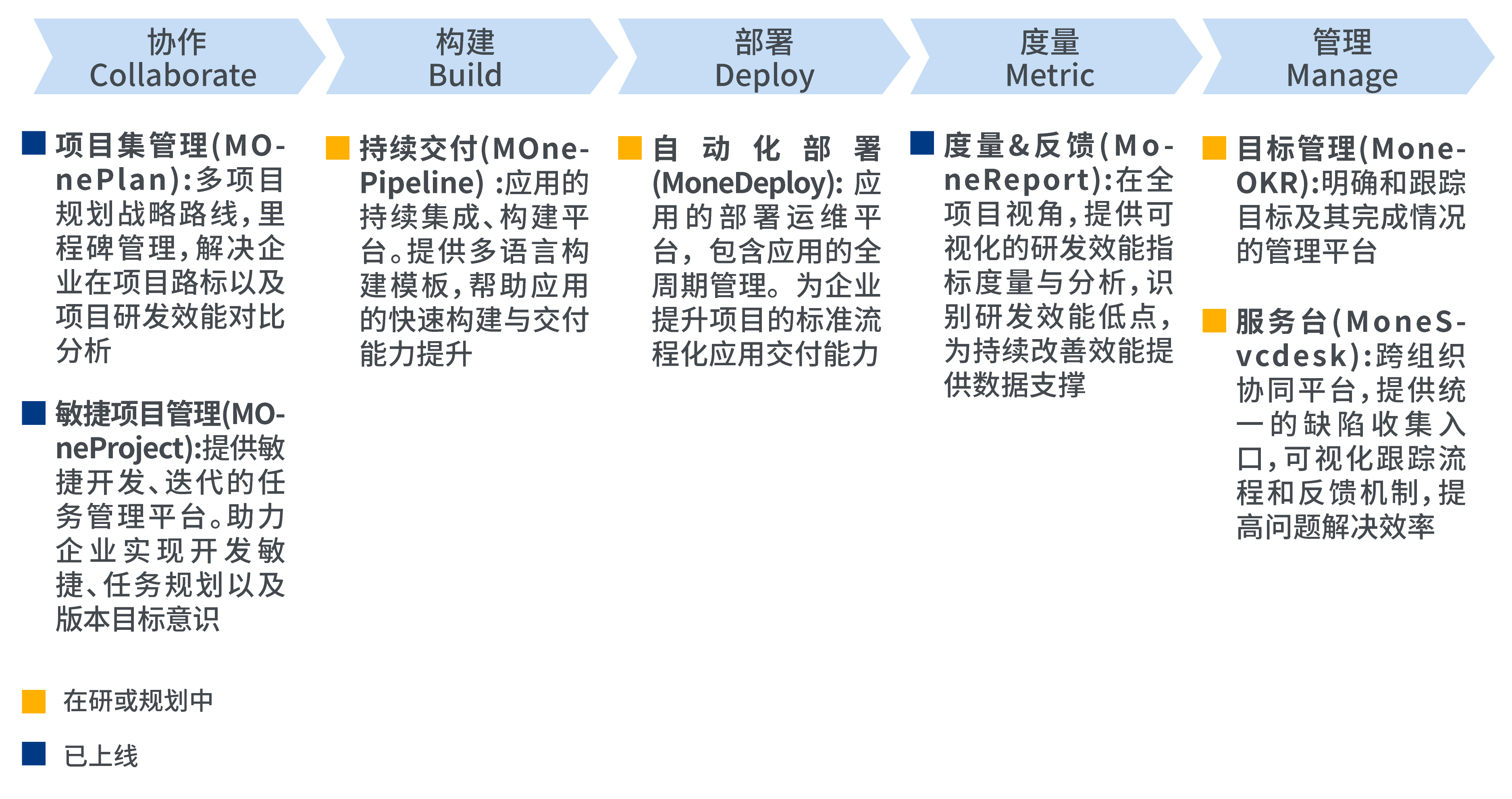 MOne 平臺是一個在企業在研發協作過程中,識別研發中面臨的問題和研發效能短板而生的工具平臺,MOne 采用了先進的研發架構,歷經眾多業務場景打磨,覆蓋項目協作、應用集成、持續部署、度量反饋全流程,可為企業提供從需求到代碼再到部署的完整解決方案,全面提升企業研發效能,加強內部協作管理。