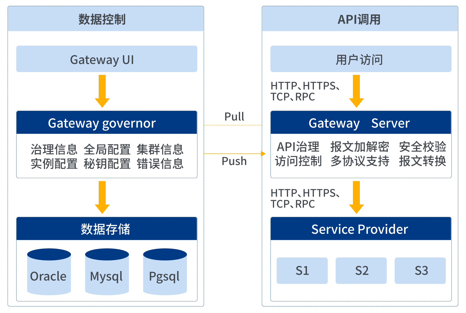 目前市面上基本都是一個服務,沒有做到最大功能上的解耦,在此基礎上長亮科技全面創新,將網關服務分為管控端和運行端兩部分,單獨運行,讓網關運行服務脫離外界依賴,真正將gateway最大化限度的解耦。